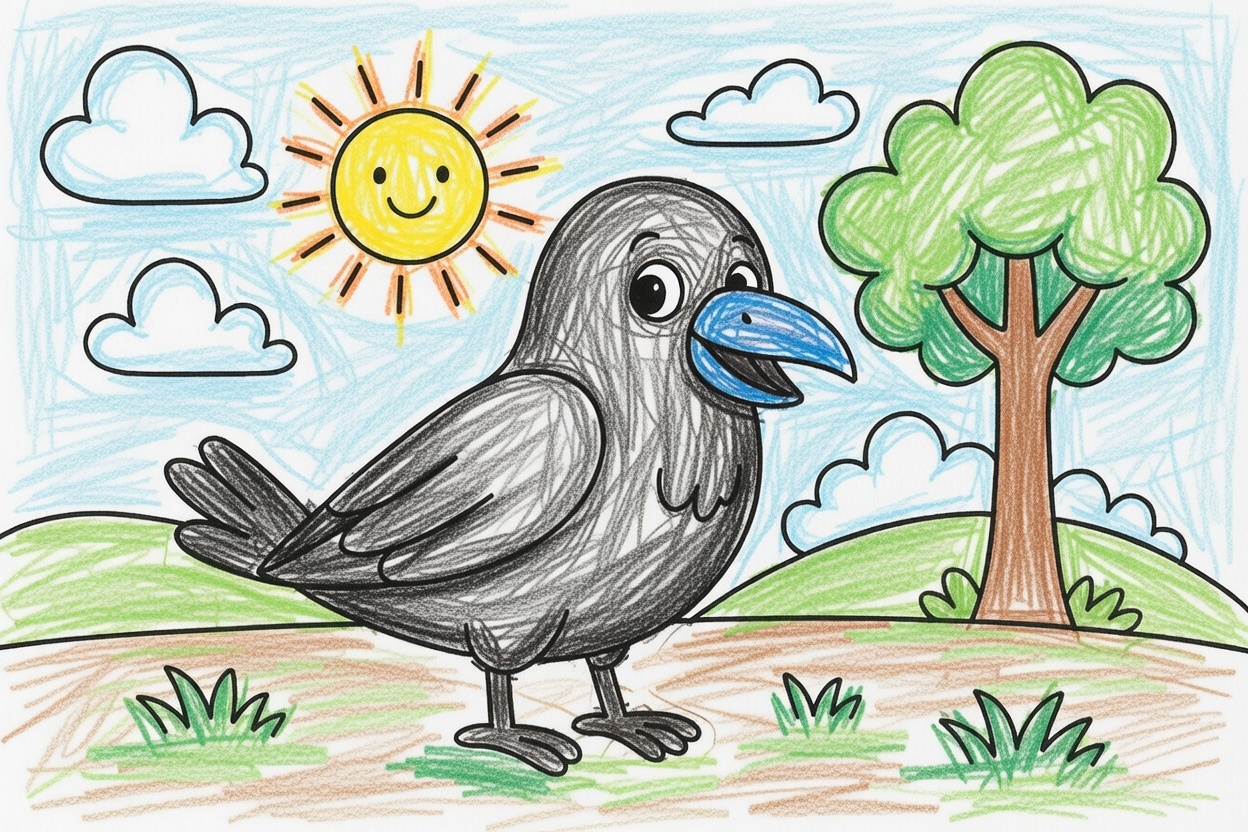 Meet a cheerful crow enjoying a sunny day! This cute and simple coloring page helps kids learn about nature, practice coordination, and have fun exploring colors with a friendly bird in the warm outdoors.