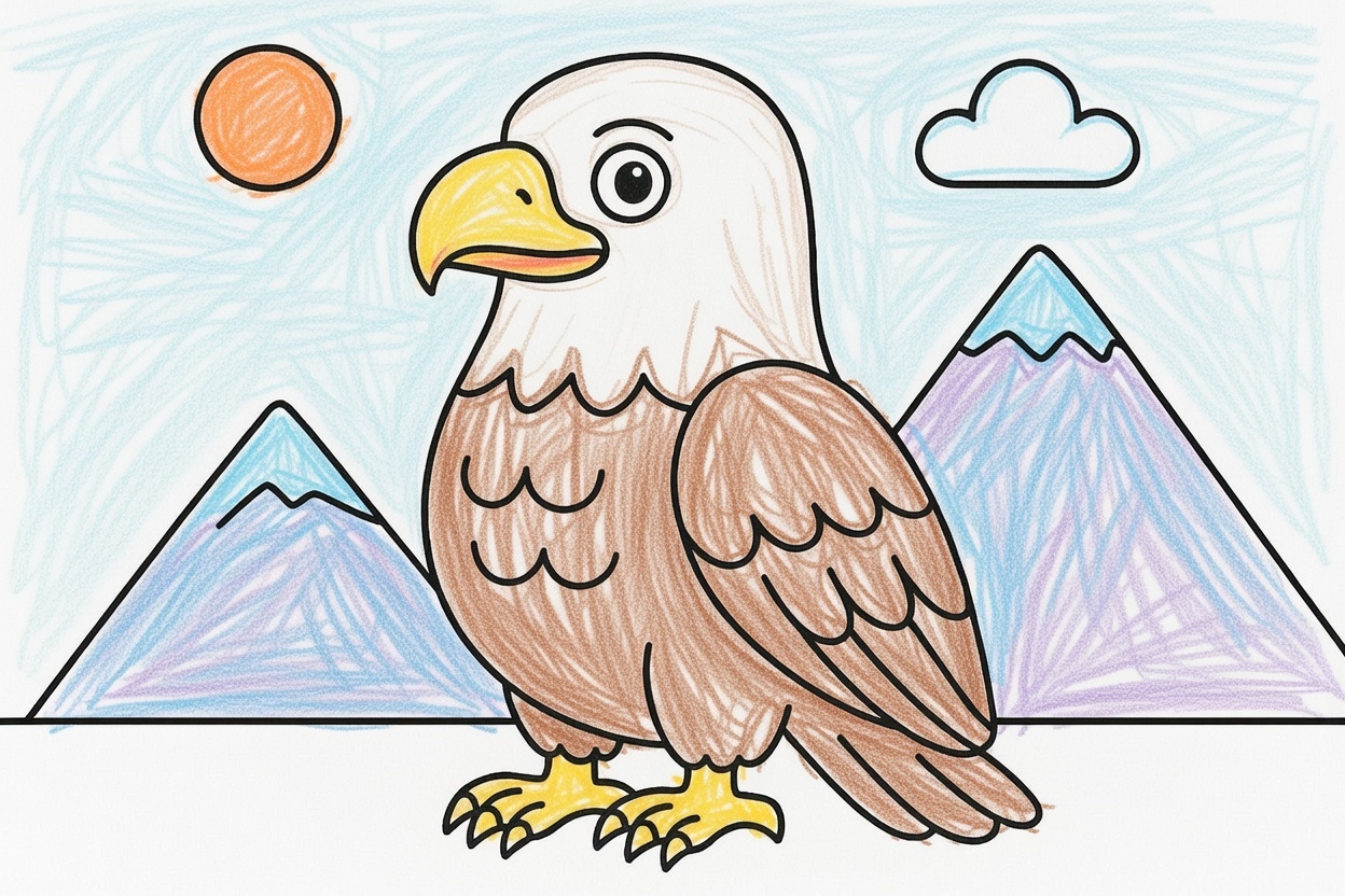 A proud American bald eagle stands tall on a rock beneath the bright sun! This simple coloring page helps toddlers explore nature, learn about birds, and enjoy peaceful creative time.