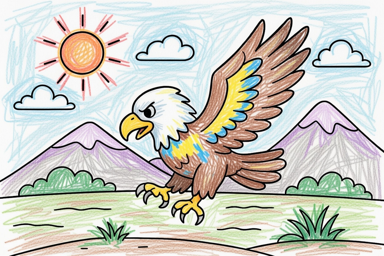 A bold eagle dives over a sunny lake to catch its prey! This fun coloring page helps toddlers explore nature, improve motor skills, and enjoy creative outdoor scenes.