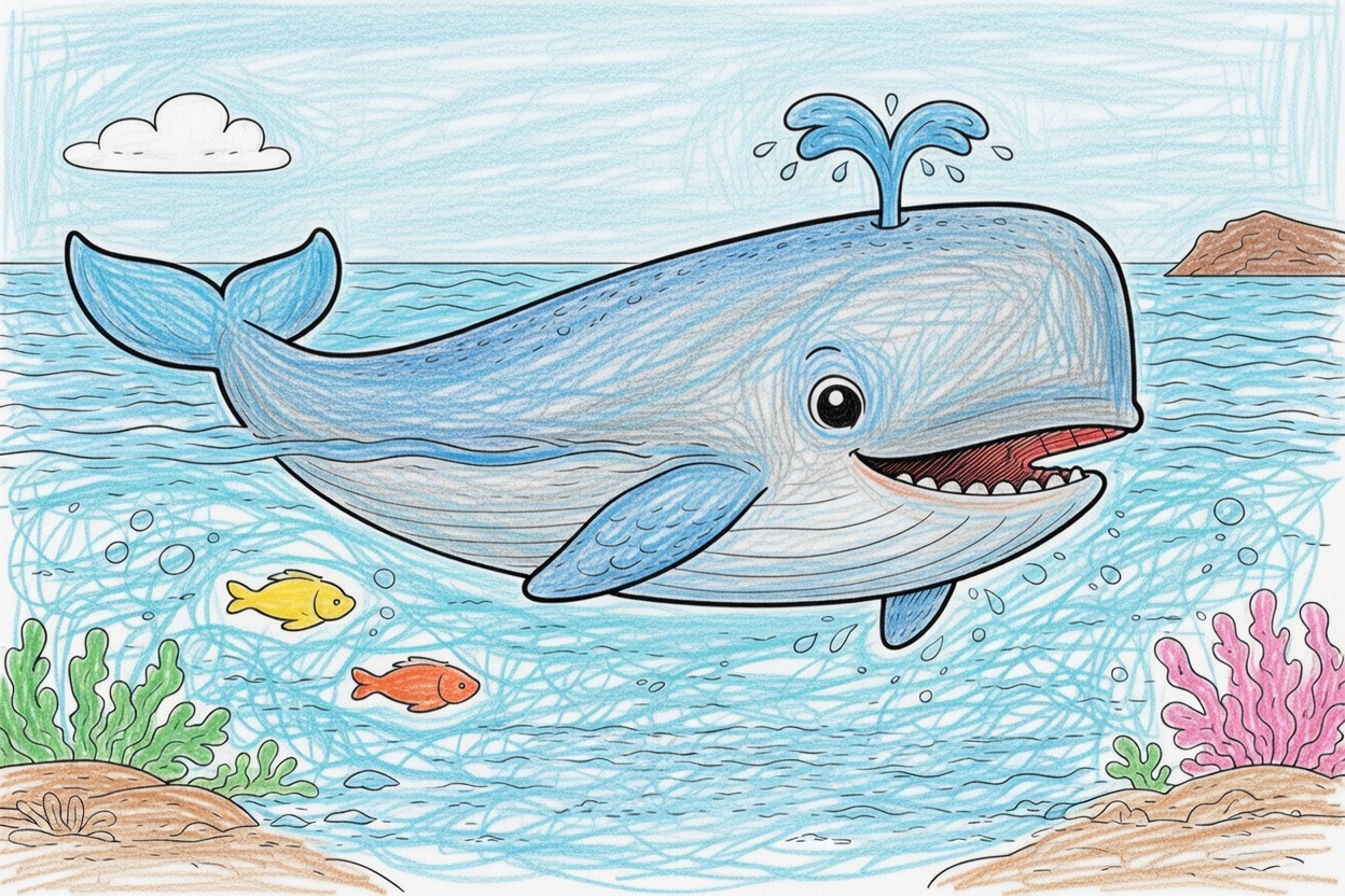 Printable coloring page for kids and toddlers showing a big sperm whale swimming in the ocean. Simple shapes and bold outlines make this preschool coloring page easy and fun to color.