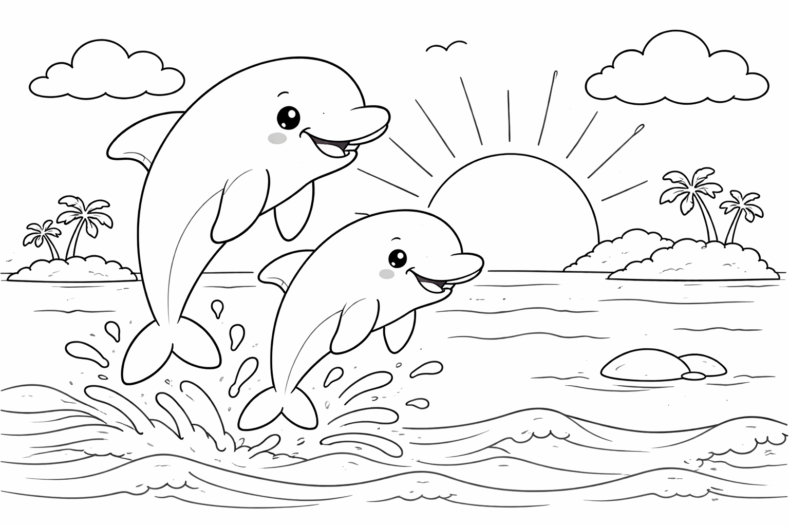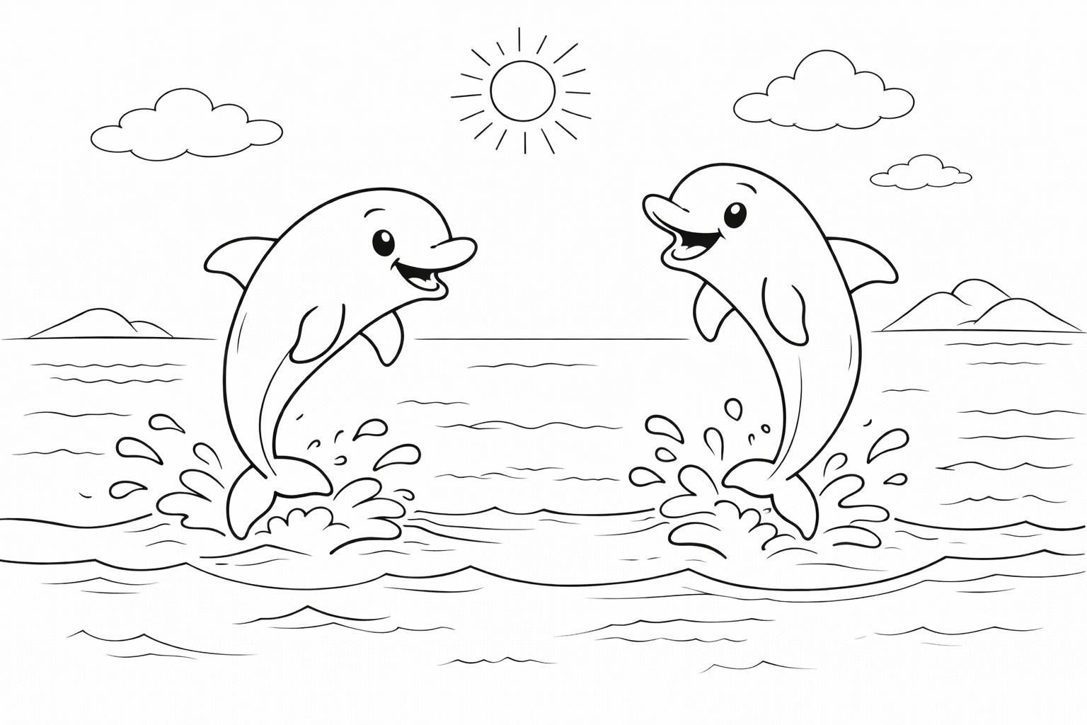 Playful Dolphins in the Ocean Coloring Page