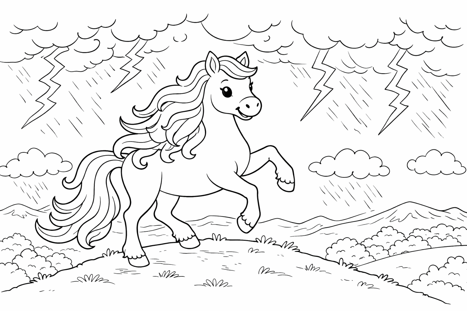 Prancing Horse in a Storm Coloring Page