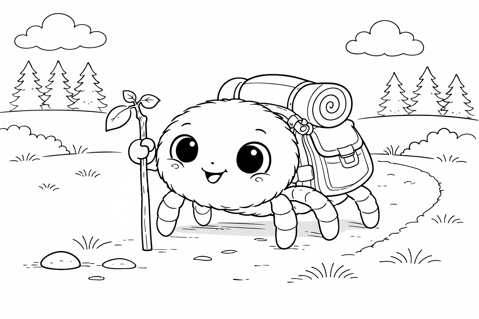 Cute Spider Traveler Coloring Page