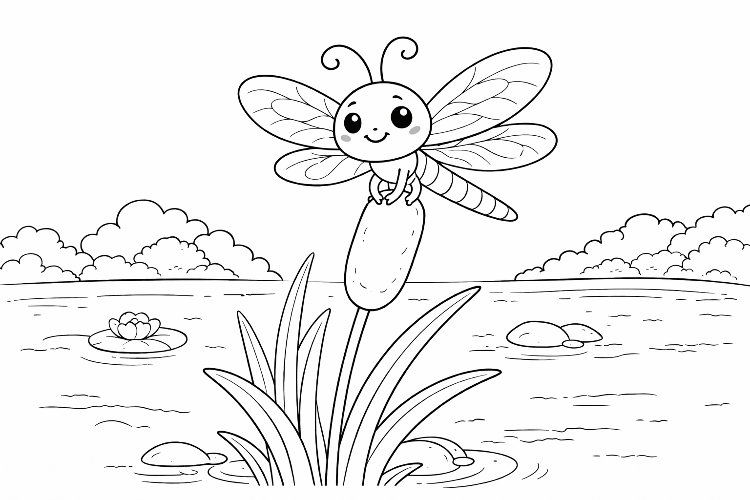 Dragonfly on a Cattail Coloring Page