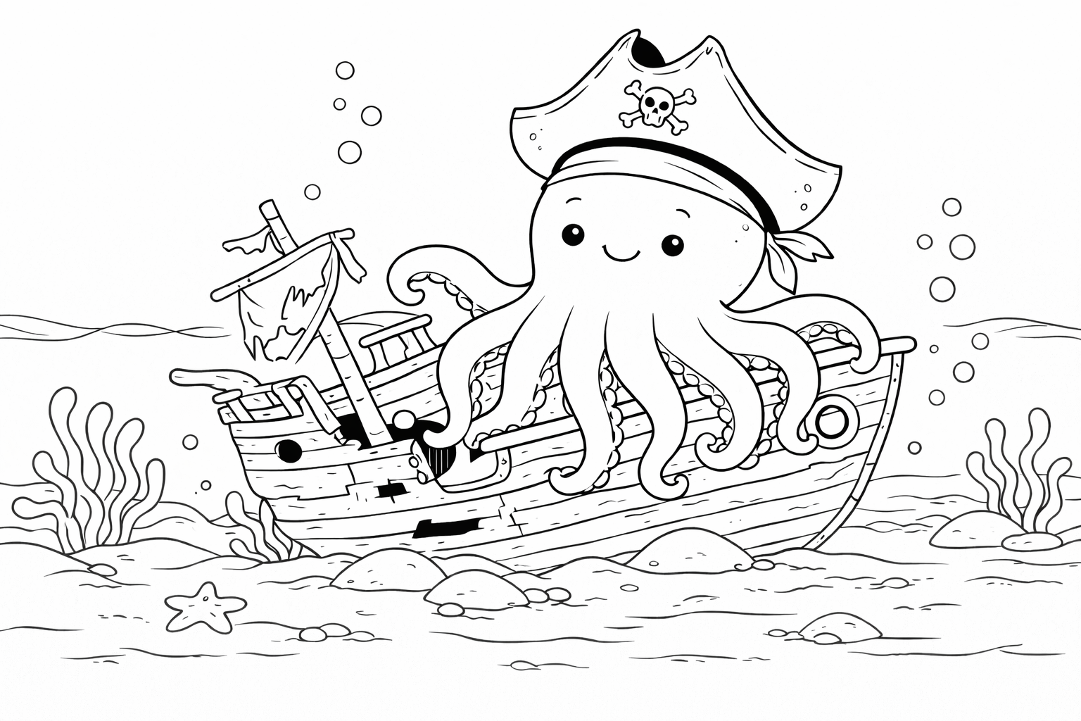Pirate Octopus Coloring Page