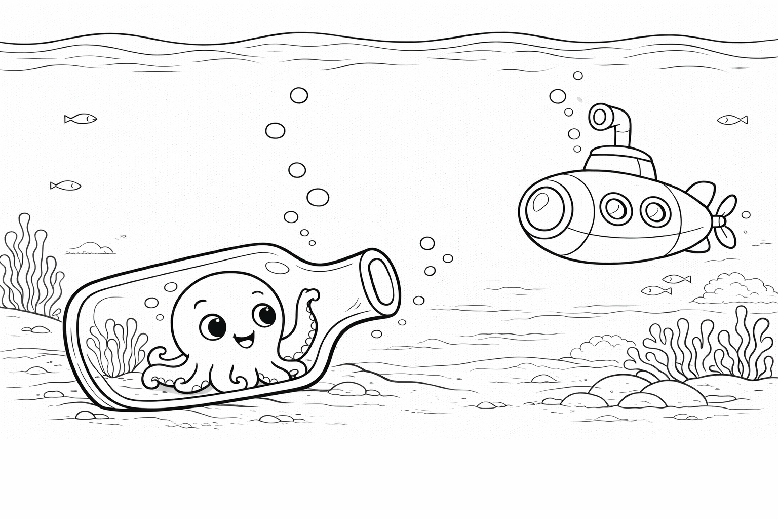 Little Octopus in a Bottle Coloring Page