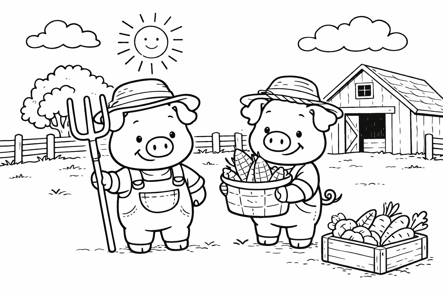 1–2 years. Toddler coloring pages with large images and thick outlines are ideal for hand training, first attempts with tools, and learning colors. The goal is simple familiarization, without demands for neatness.