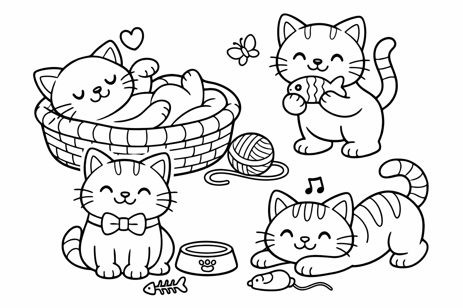 - Cat coloring pages – it is hard to find a child who does not love fluffy, tailed companions;