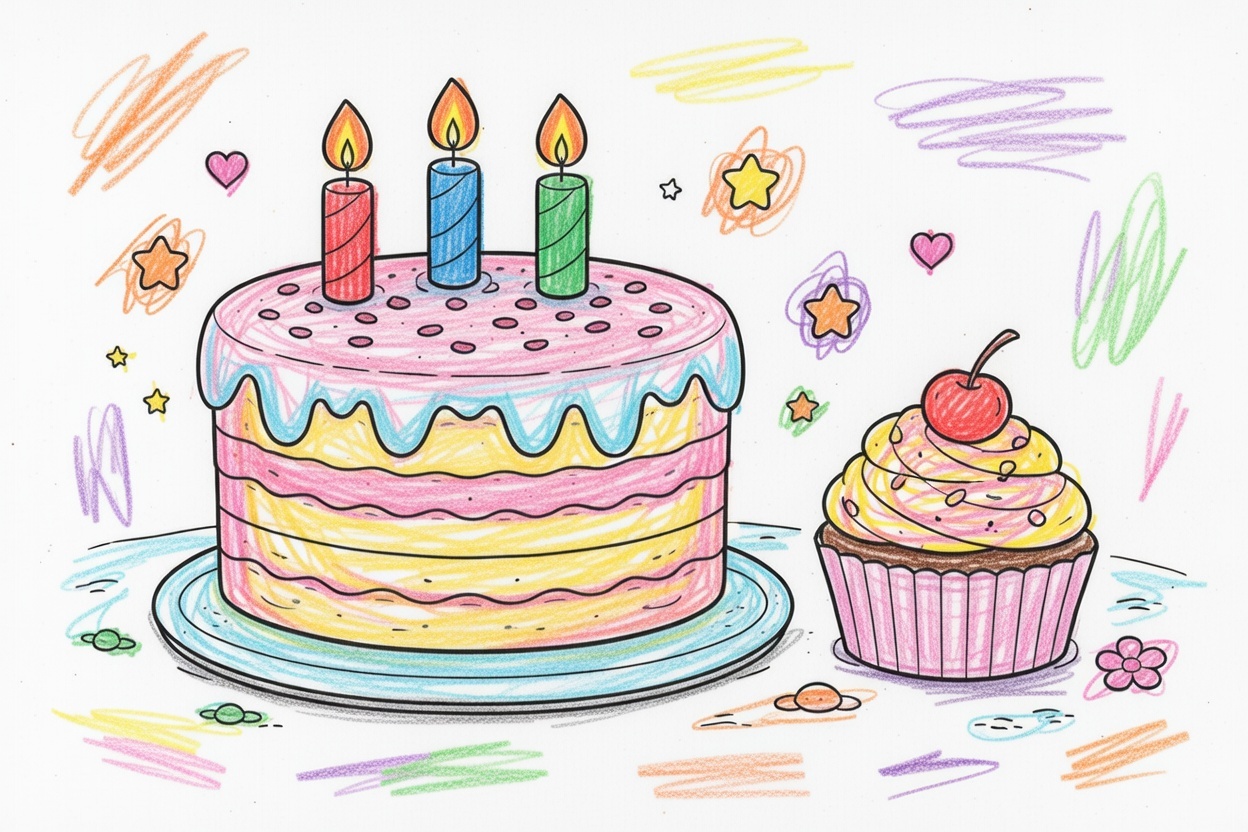 Printable coloring page for kids and toddlers with a big cake and a cupcake. Large shapes, bold black outlines, and a simple layout make it easy to color for ages 1–5.