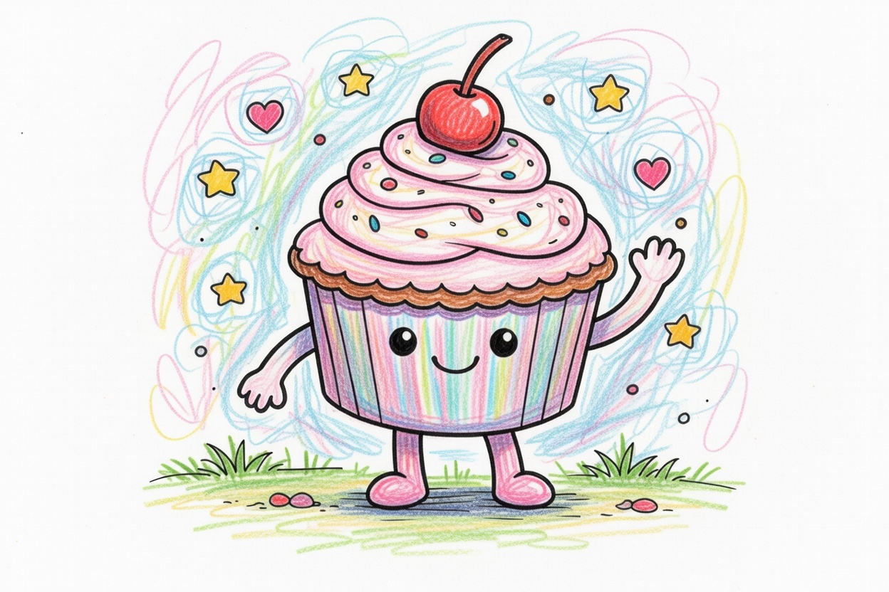 Printable coloring page for kids and toddlers with a cute cupcake character. Big shapes, bold black outlines, and a very simple design make it easy to color for ages 1–5.