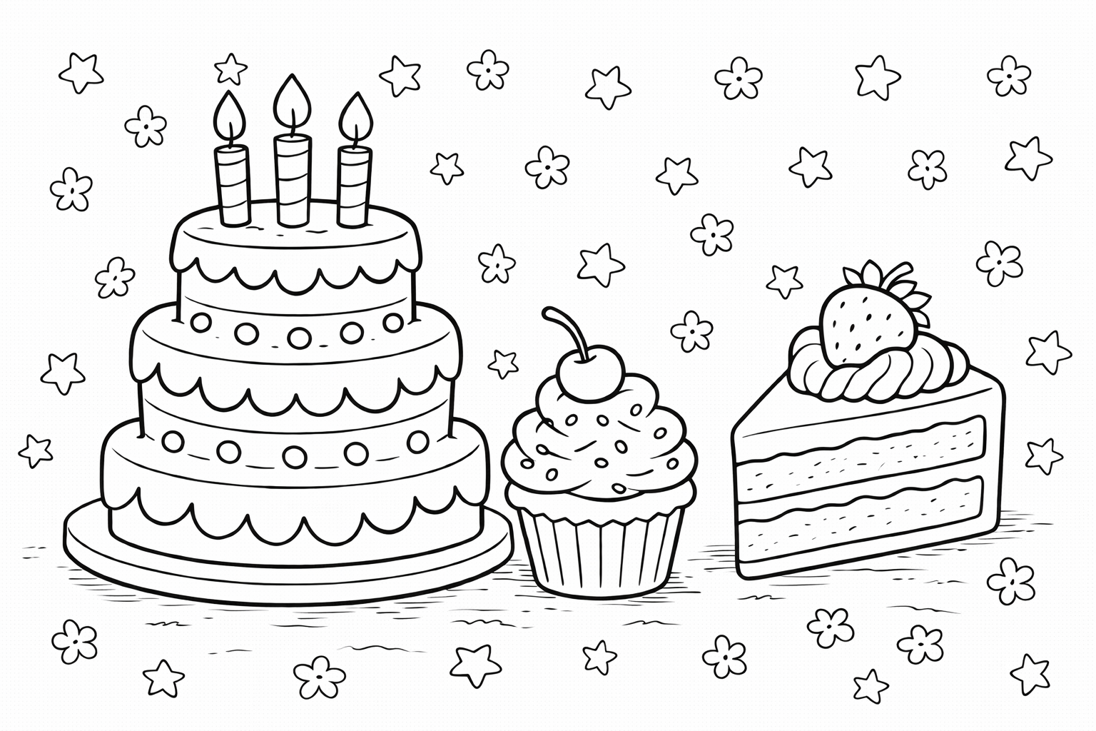 Cake and Cupcake Coloring Page