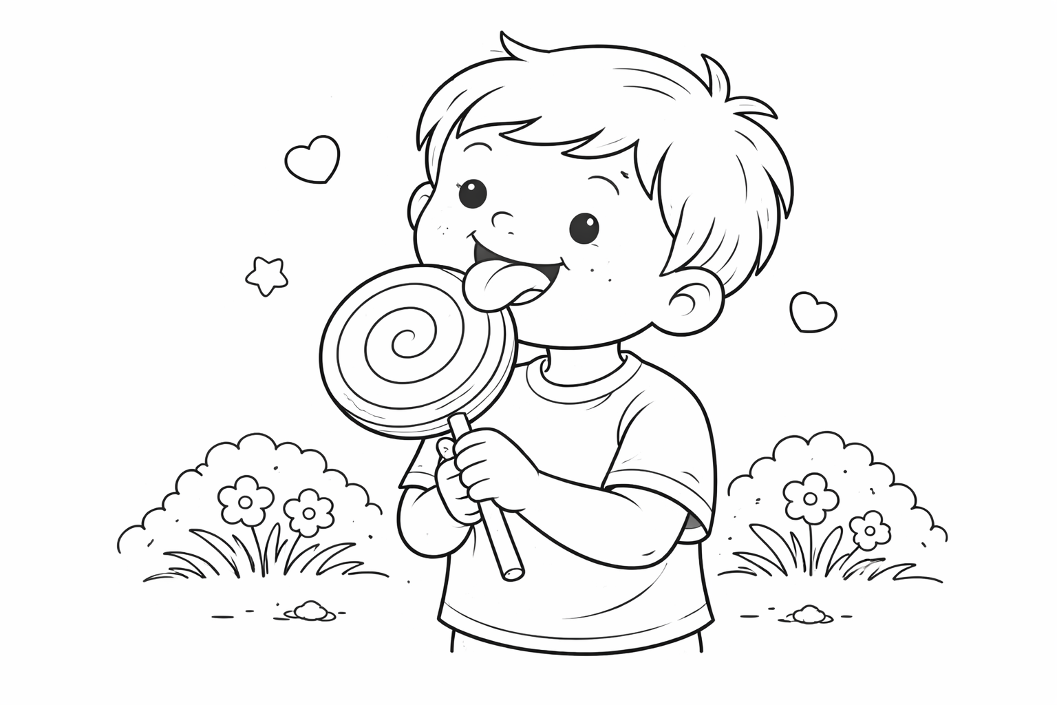 Boy with a Big Lollipop Coloring Page