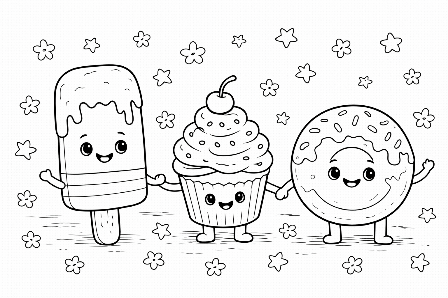 Cute Human-Like Sweets Coloring Page
