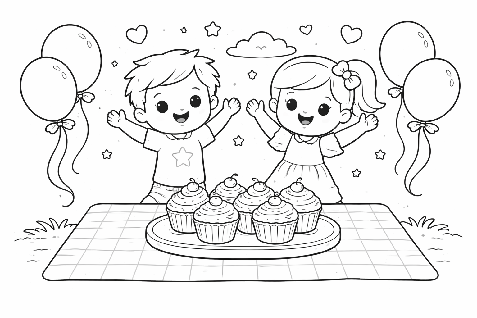 Kids Enjoying Cupcakes Coloring Page