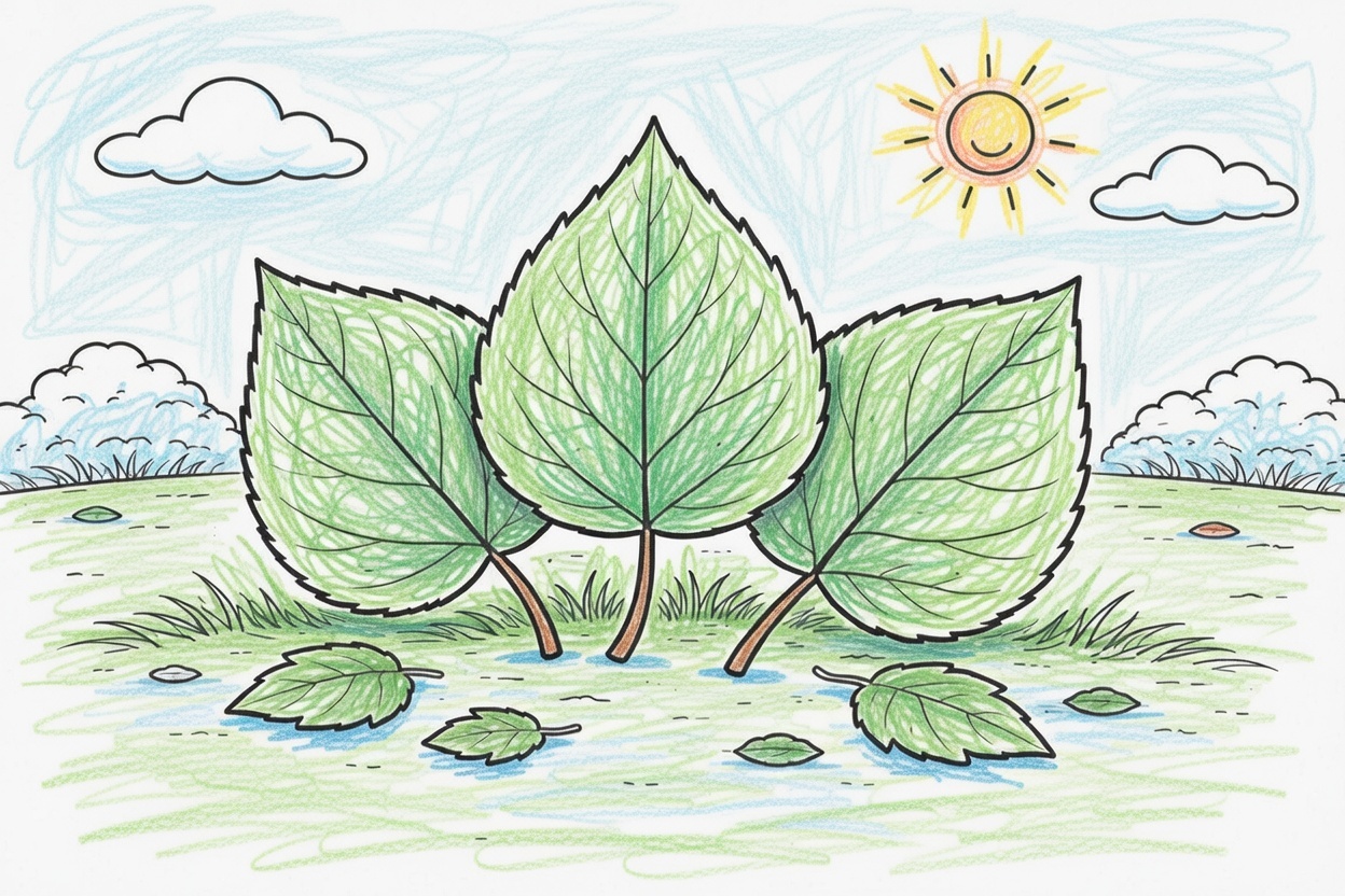 A simple printable coloring page for kids showing big poplar leaves on the ground. Large shapes and bold outlines make it easy and fun for toddlers and preschoolers to color.