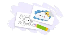A printed preschool sun coloring page takes up almost no space in a bag. Bring a sturdy clipboard with a clip, and any meadow turns into an art studio. Keiki also has sun coloring pages for kids in the app that require no tools or packing at all. Everything you need is already in the app. Wherever you are, you can keep your little one engaged.