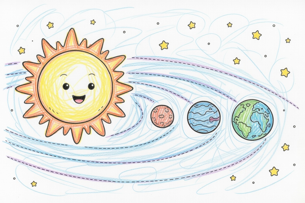 An educational printable coloring page for kids showing the correct order of planets in the solar system. Simple shapes and bold outlines make it easy and fun for toddlers and preschoolers.