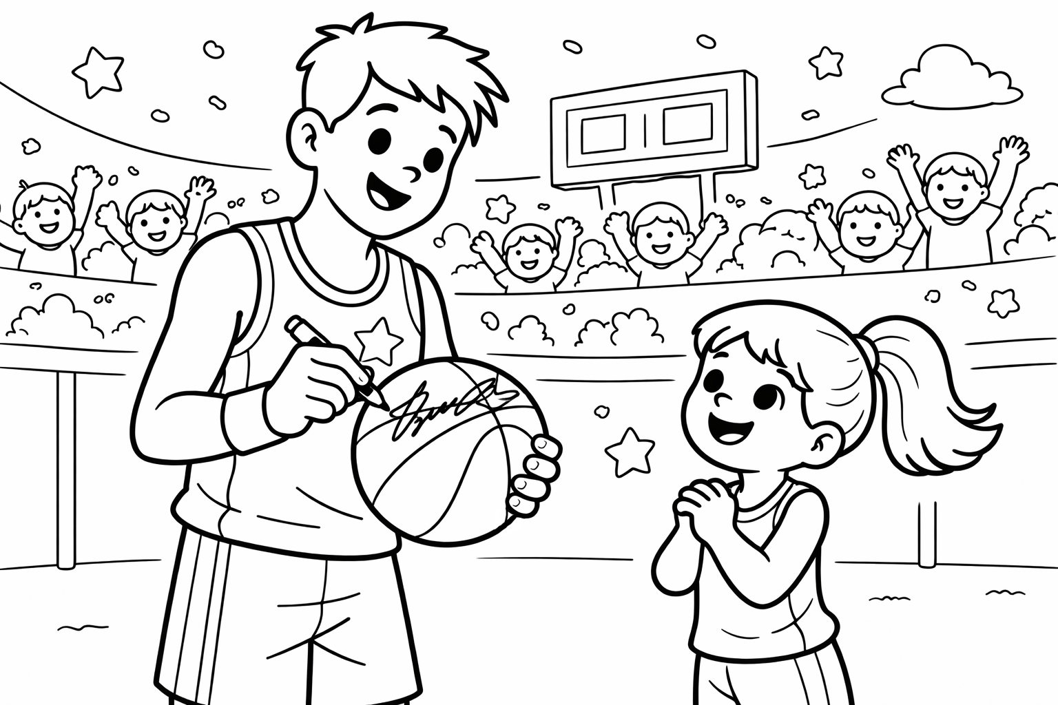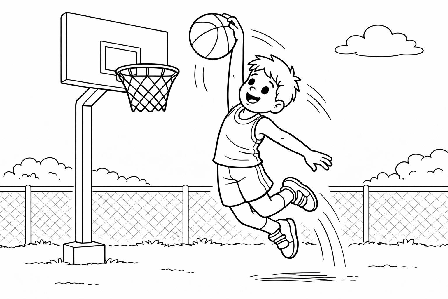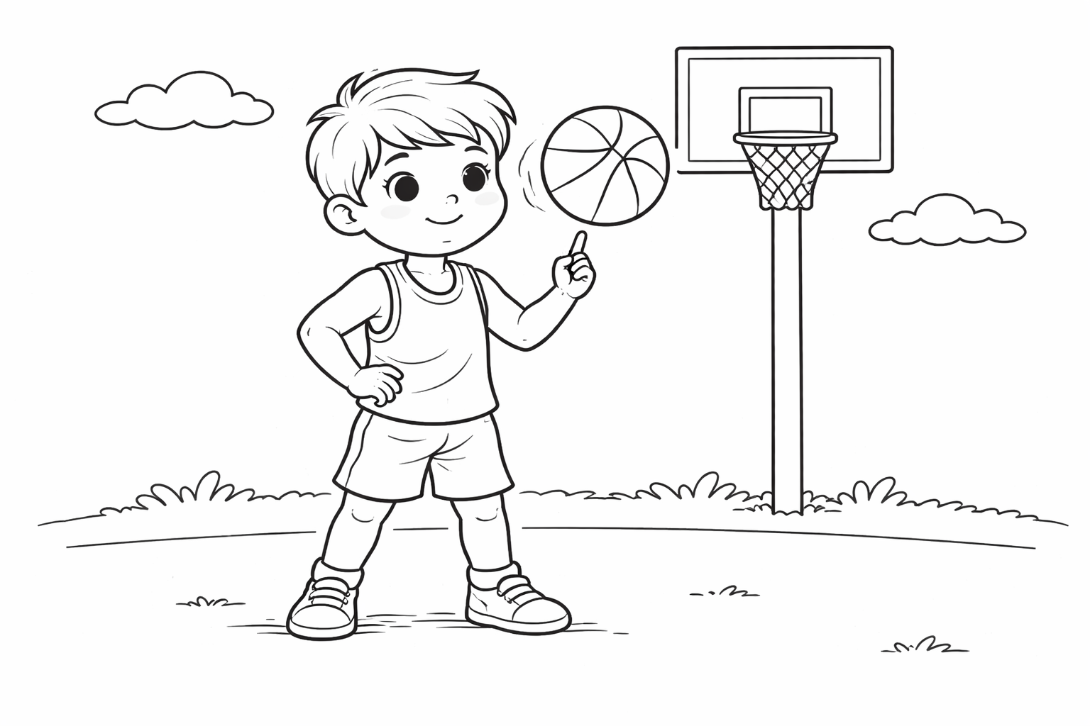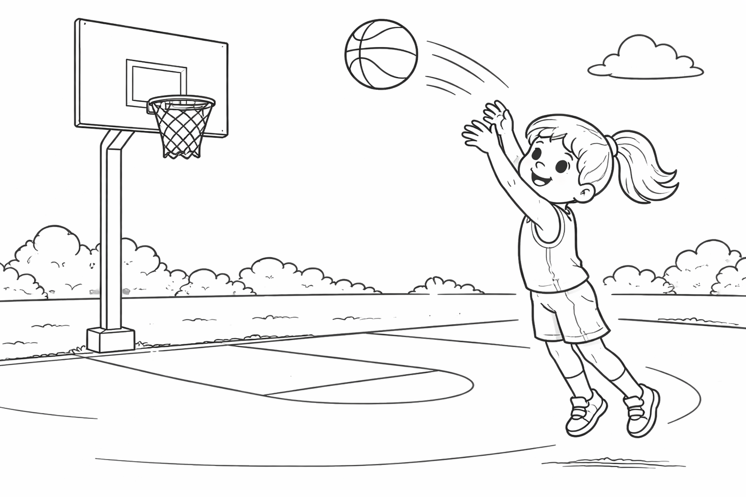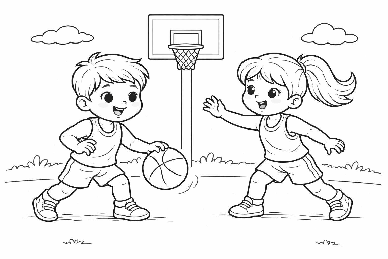 Coloring pages work as simple visual guides. For example, while coloring basketball scenes, you can explain the basic idea of the game, goals, and simple rules.