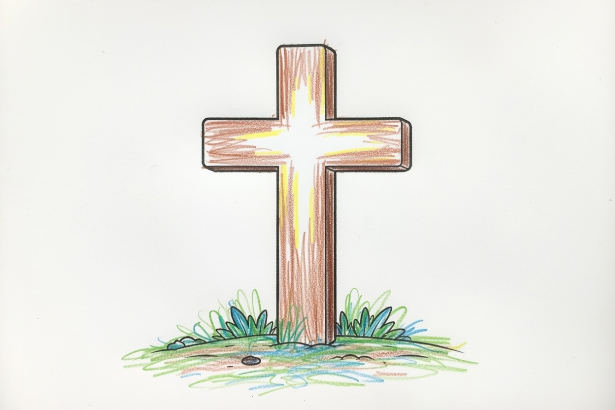 A simple cross with clean lines and a calm shape. This easy coloring page uses large forms and clear outlines, helping young children explore Easter symbols in a gentle and peaceful way.
