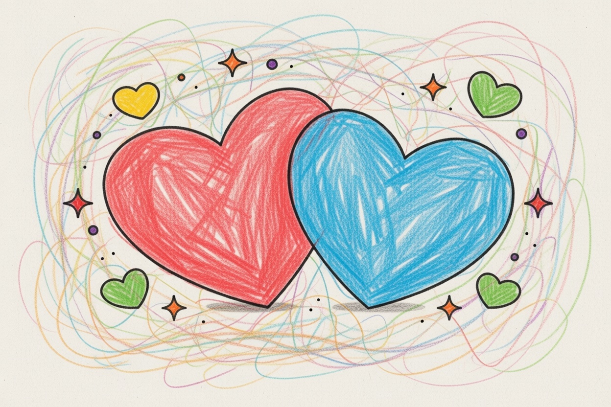 Two big hearts stand side by side and gently touch each other. Clean lines and simple shapes create a warm and friendly Valentine’s Day coloring page that is easy and calming for young children.
