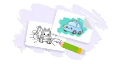 The background in in-app and printable excavator coloring pages helps a child understand scale. If you draw a small worker figure or a regular passenger car next to it, it becomes immediately clear how huge your excavator is. This helps build a sense of proportion and composition.