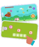 Complete words with missing letters and sound cues. During gameplay, your child will:
