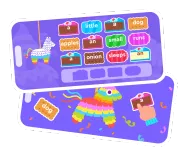 By choosing the right articles and words, kids complete sweet sentences and fill their candy pinata with every correct match. During gameplay, your child will: