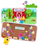 Helps kids identify and name colors by sorting colorful eggs in a fun farm setting. For ages 1–6.