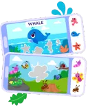 A colorful puzzle game where kids match missing pieces to complete images