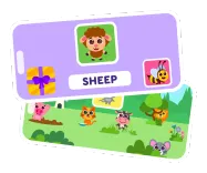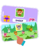 Children explore animals and match names, images, and sounds. During gameplay, your child will: