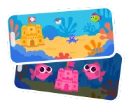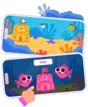Children explore ocean scenes and sort by type, color, and size. During gameplay, your child will: